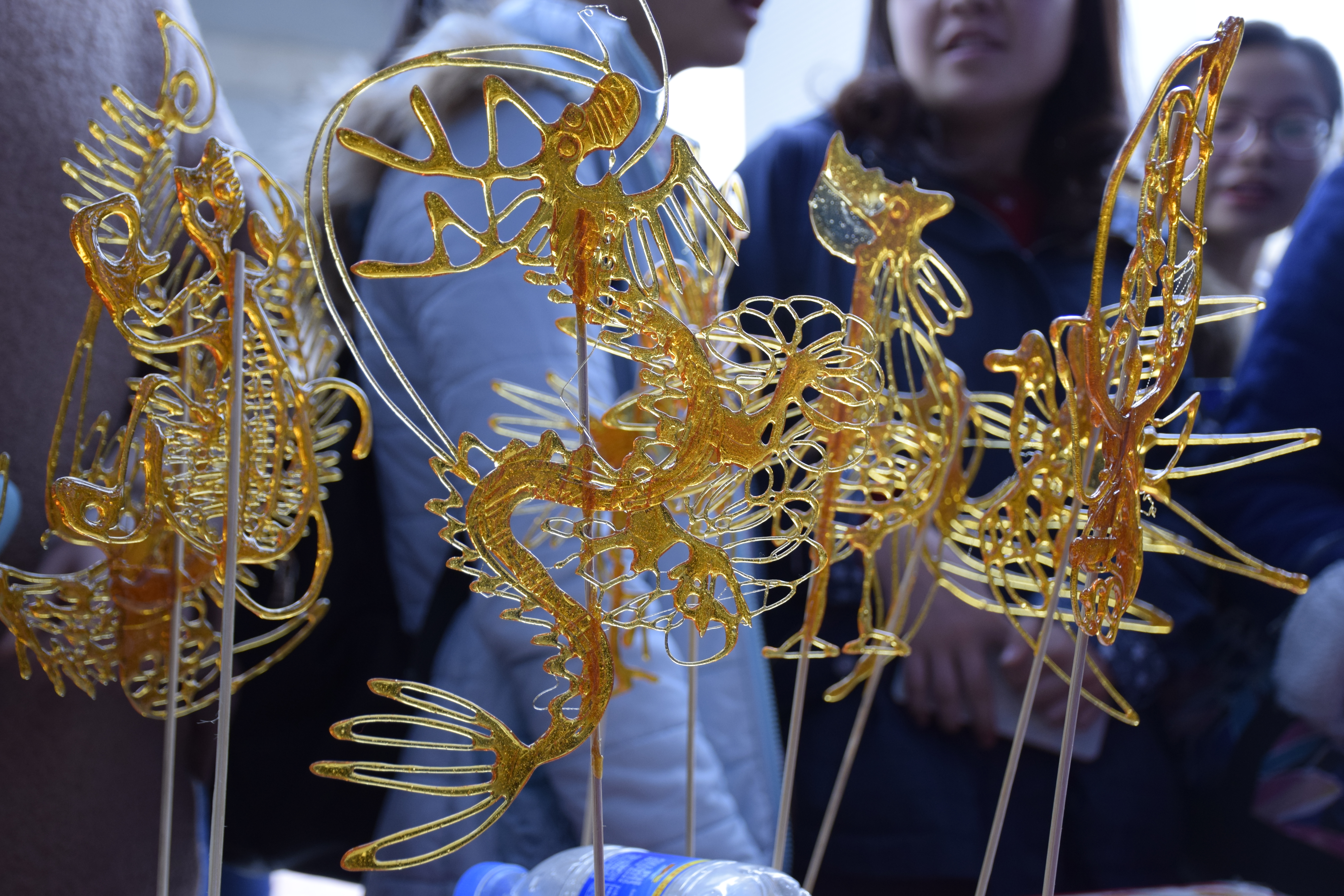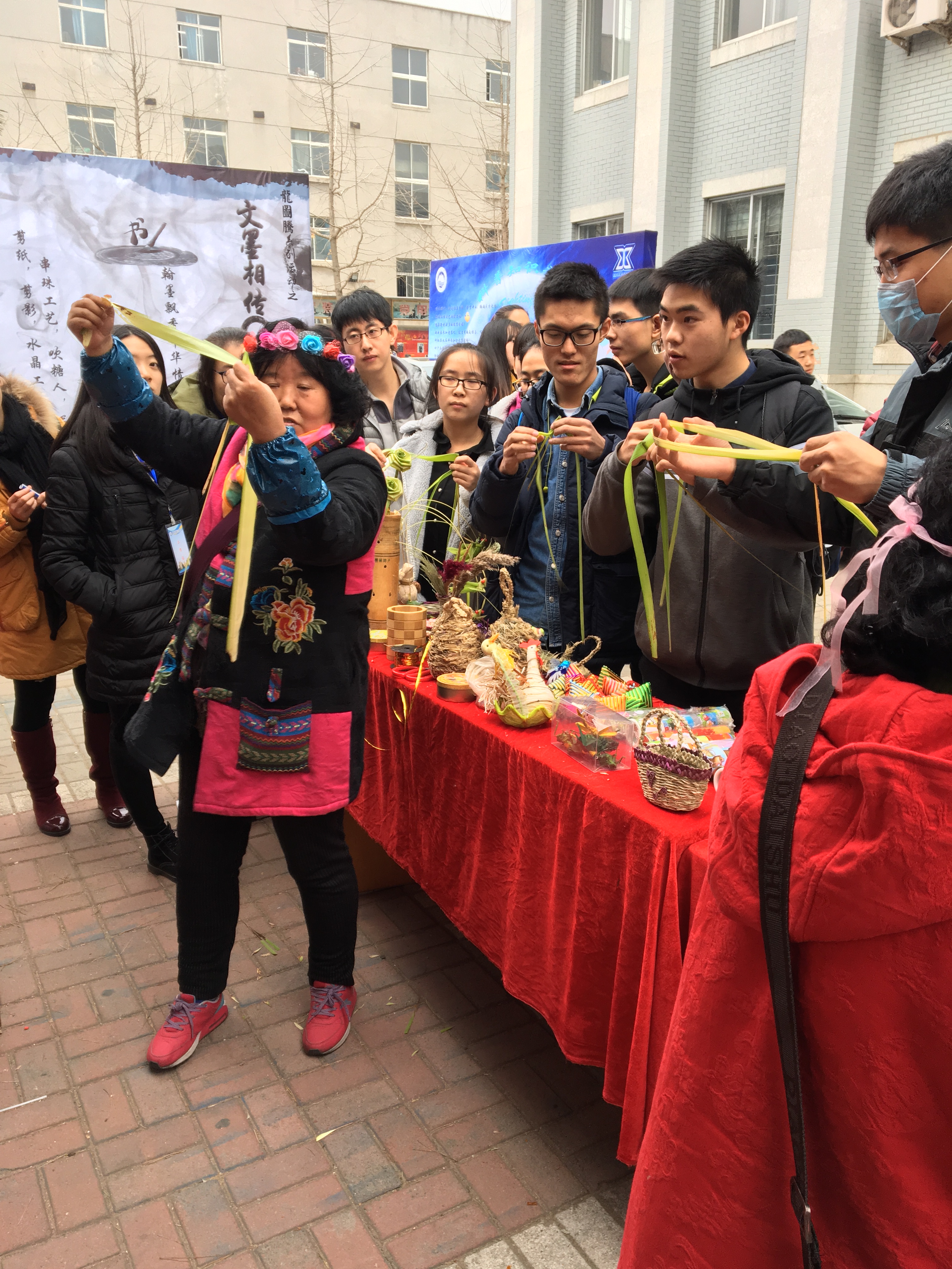此次活动不仅对这些工艺品进行了展出,还邀请同学们与手工艺人一起来制作、体验,动手创造自己喜爱的手工糖画,手工草编等。独具匠心的书签字画;巧夺天工的玉石古玩;惟妙惟肖的糖人软陶等吸引了同学们的极大兴趣,勾起了同学们儿时的回忆。大家兴致勃勃参与其中,在“学艺”的过程中感受古色古香的传统文化魅力,同时惊叹于民族工艺的博大精深。