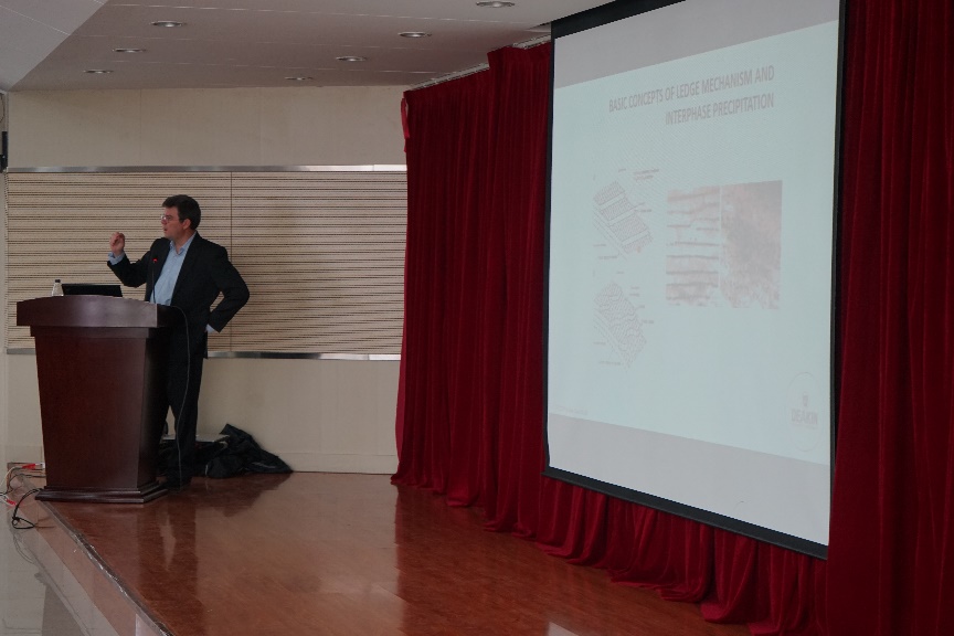 Bernard Rolfe副教授回顾并总结了汽车用先进高强钢的发展历程以及新一代铁素体析出强化钢的最新进展,基于Monte Carlo Potts方法模拟了铁素体基体中团簇原子的形成与演变规律,并与在场的教师和研究生进行了深入的讨论和互动交流。