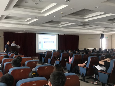 曹昌燕副研究员从“水中低浓度高毒性重金属离子污染深度净化”、“高性能纳米催化剂的构筑及催化应用”、“工业用贵金属催化剂的开发”三方面的研究成果为例讲解了纳米结构材料的可控构筑及其在水处理和多相催化中的应用,并与在场的教师和研究生进行了深入的讨论和互动交流。