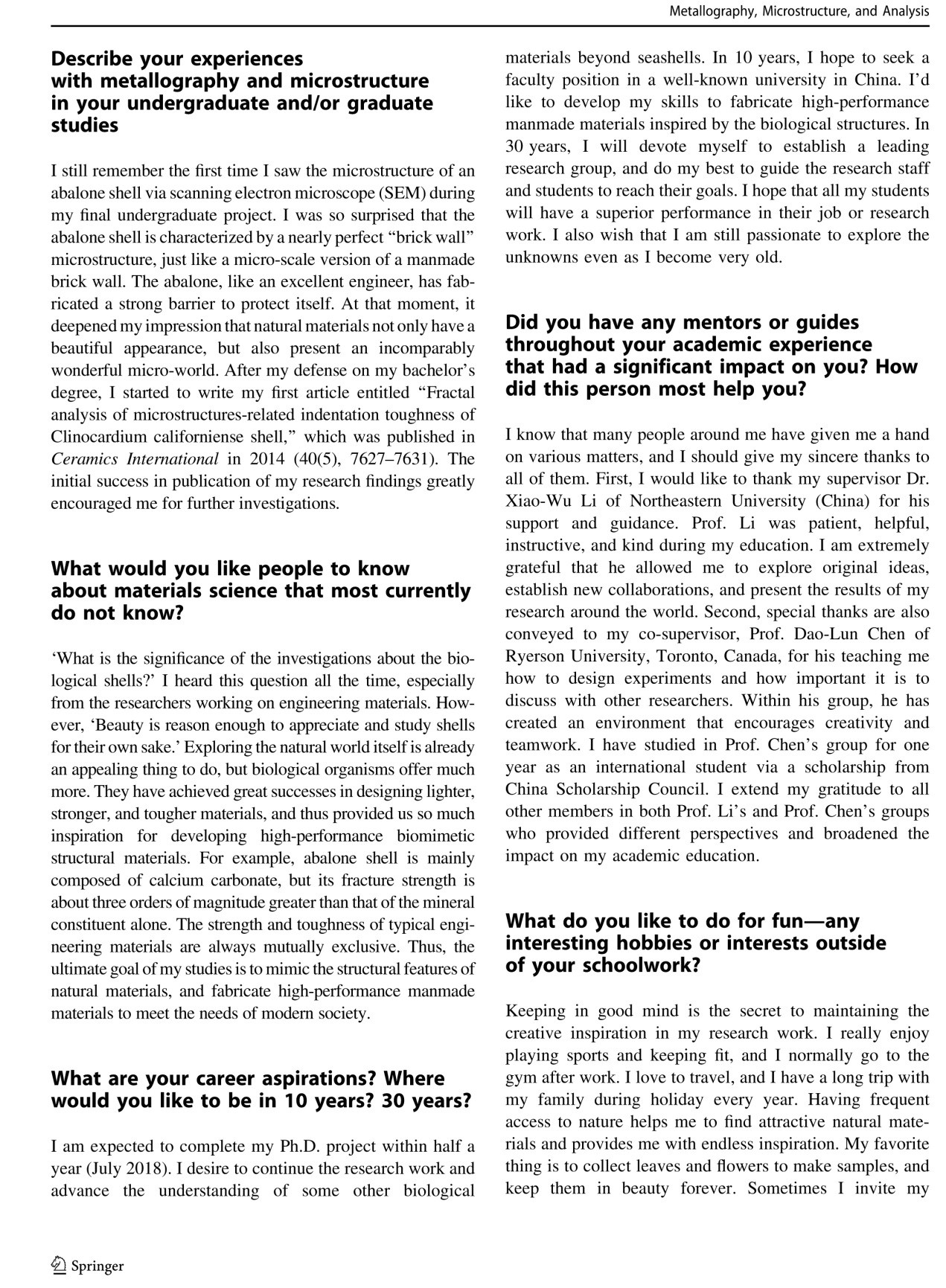 《Metallography, Microstructure, and Analysis》为美国金属学会(ASM)附属组织—国际金相协会命名的刊物,由Springer收录出版。自2012年创刊以来,该期刊每期会有一个专栏来介绍一些新兴的科研成果或科研工程师。森林舞会游戏