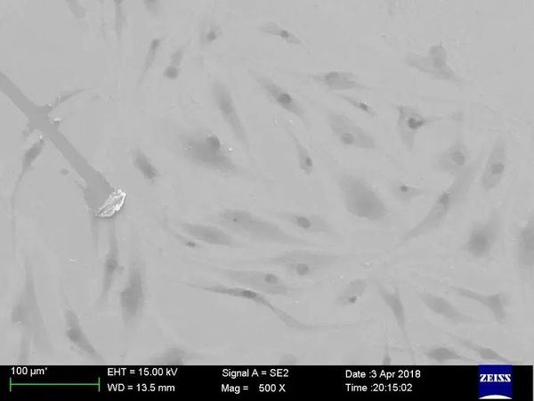 本科生李雯蕾的《莲池春水》原图是在Zeiss Supra55扫描电子显微镜下拍到的细胞在Zr基金属玻璃上培养后形成的粘附形态图,利用细胞自然的分布,以及其自身形态的特点,描绘出暖春时节的池塘。
