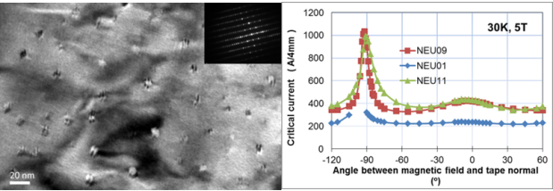 图1 BZO纳米柱c轴方向强钉扎及产生的优异临界电流特性