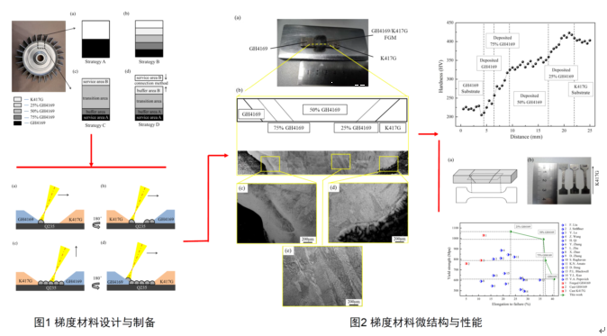 本项目选择在航空航天关键装备复杂结构部件上具有重要应用前景的高温合金整体叶盘梯度材料为研究对象,采用激光熔化沉积为制备方法,主要获得了以下研究成果:完成了镍基高温合金GH4169与K417G的熔炼制备;研发了VIGA气雾化技术,并制备出激光3D打印用GH4169与K417G高温合金粉末;采用计算相图模拟梯度材料成分设计,建立了任意成分激光熔化沉积镍基高温合金相组成预测的方法;优化了激光熔化沉积的关键工艺及其成形过程,制备出不同梯度成分的样品并表征了其显微组织与性能,阐明了梯度材料的微结构演变及其强韧化机理;研究了高温合金梯度材料经激光熔化沉积成形过程的变形开裂行为,揭示了高温合金K417G成形过程中的开裂机理,采用激光固态连接法制备出无裂纹的GH4169/K417G梯度材料,并建立了相应的热处理制度,为整体叶盘的设计与生产奠定了基础。项目丰富了高温合金梯度材料和激光熔化沉积制备技术的基础理论知识,促进了相关学科发展,为推动我国先进梯度材料制备技术和装备制造技术的进步提供了理论指导和技术支撑。
