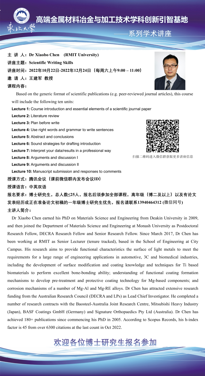 高端金属材料冶金与加工技术学科创新引智基地系列讲座之博士科技英语写作