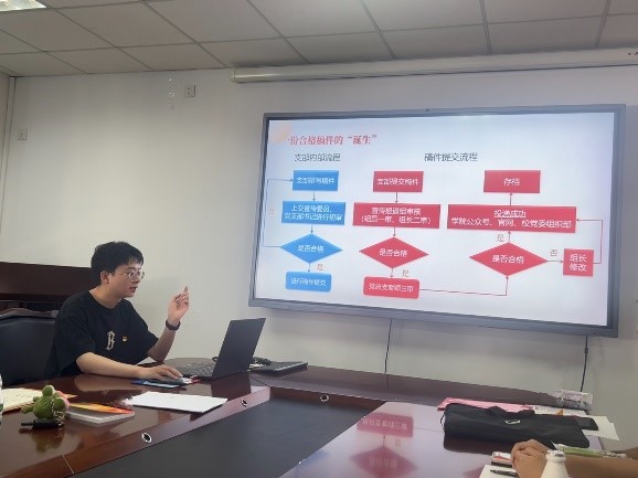 会议伊始,商淼向2023级学生党支部书记的加入表示热烈的欢迎,并且从“明确支部工作计划”、“建校百年特色党建工作”、“三会一课”等多个方面,对新学期党建工作提出新的要求。接着,商淼着重讲解了学生党支部工作的原则以及发展党员的政治标准、工作程序、材料规范,并要求各党支部书记认真严格、高质量高要求地完成学生党员发展工作。随后,学生党总支各工作组根据上学期工作及本学期情况详细向新加入的党支部书记们介绍了主要工作内容,并将工作经验进行分享。会议最后,商淼表示,各党支部书记要走在前列、干在实处,充分发挥党员先锋模范作用,创新党建工作形式,加强支部特色化建设,切实推动学生党建工作取得新成效。