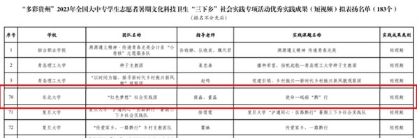 2月20日,在2023年全国大中专学生志愿者暑期文化科技卫生“三下乡”社会实践专项活动优秀实践成果刚刚公布的表扬名单中,由森林舞会游戏 董磊、商淼老师指导,硕士党员所组建的森林舞会游戏 红色梦想社会实践团制作的《使命一一砥砺“黔”行》短视频,获评优秀实践成果。