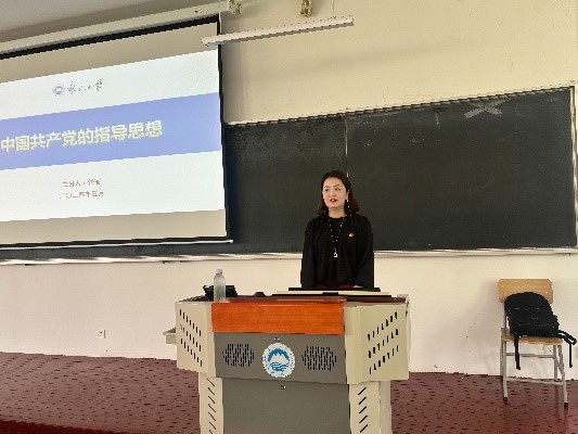 任丽以中国共产党的指导思想为主题,向同学们详细阐述中国共产党的指导思想是什么、马克思主义中国化百年发展历程、党的指导思想是如何形成并确立的等方面的内容。她表示,希望同学们贯彻好党的方针政策,在实践中严格要求自己,向优秀的党员同志看齐,端正入党动机,提升个人修养。