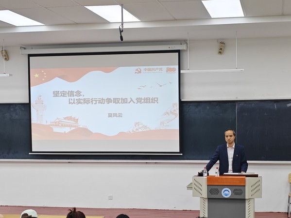 夏风云以“坚定信念,以实际行动争取早日加入党组织”为主题,向同学们详细阐述了正确的入党动机、入党条件以及入党手续三个方面的内容。夏风云表示,希望同学们按照党员标准不断严格要求自己,在实践中磨炼自己,立志做有理想、敢担当、能吃苦、肯奋斗的新时代好青年,以实际行动争取早日加入党组织。
