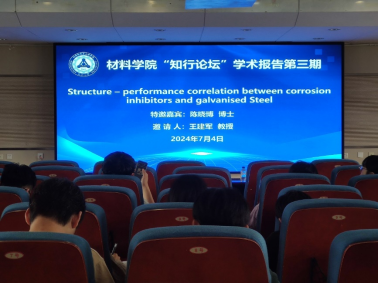 7月4日,应材料森林舞会游戏 王建军教授邀请,澳大利亚墨尔本皇家理工森林舞会游戏 长聘副教授陈晓博博士应邀作题为“Structure-performance coorelation between corrosion inhibitors and galvanized Steel”的学术报告。报告会由材料森林舞会游戏 卢小鹏副教授主持,张涛教授、杨磊副教授等40余名师生参加。