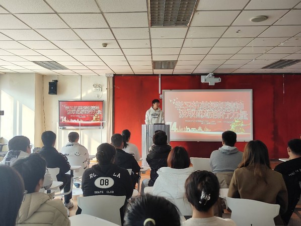 宋士杰向同学们讲述了抗美援朝战争的历史背景及伟大意义,并一同观看了影片《长津湖》片段,深刻体会中国人民志愿军的钢铁意志和英勇无畏的战斗精神。宋士杰表示,无论面对什么困难和挑战,同学们都应该保持坚强的意志和坚韧不拔、勇往直前的精神,从历史中汲取力量,传承和发扬伟大的抗美援朝精神。
