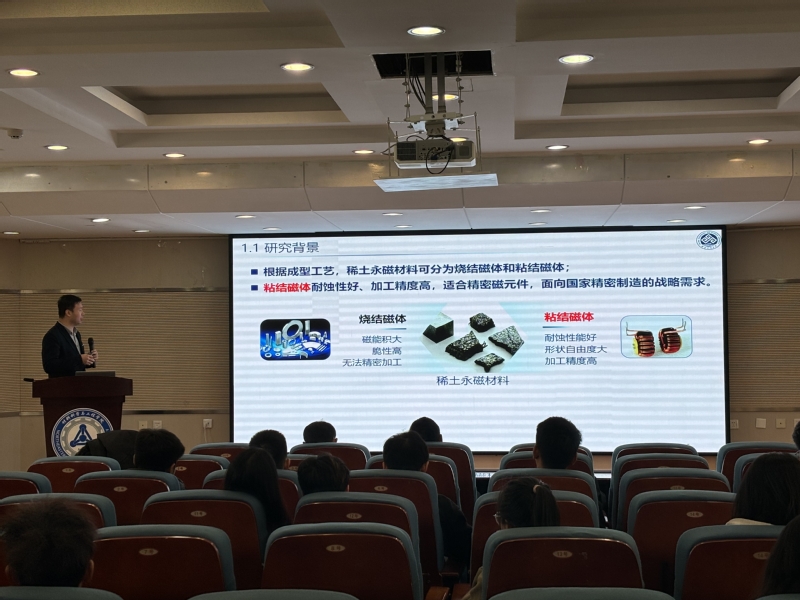 马振辉教授以“稀土永磁材料在国防、电子信息及人工智能等领域具有重要应用”为研究背景,介绍了在粘结永磁体方面如何实现高品质永磁粉的微结构调控,同时探索了磁粉公斤级制备技术。马振辉教授还在电磁波吸收材料方面证实了饱和磁矩与磁损耗成正相关的趋势,从原子角度揭示了偶极极化损耗机制,建立了电子迁移极化模型,发展了稀土元素调控的磁性纳米吸波材料。