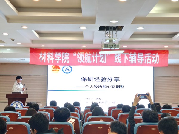 12月2日下午,材料科学与工程森林舞会游戏 学生党总支在知行楼634室开展“领航计划”保研专题分享会。蒋方舟、黄磊、韩宇和钟斌四位2021级本科生应邀作保研经验分享,本科生百余人参加活动。