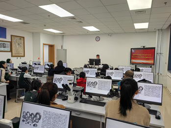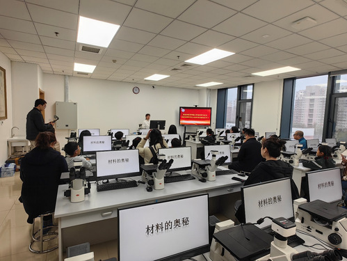 赵卓以“材料的奥秘”为题,介绍了金属材料的发展历程及其应用,讲解了金相实验的方法、流程,金相组织对材料性能的影响,通过图片展示了金属或合金内部结构形貌。同学们通过金相显微镜观看了不同材料的组织形貌,激发对微观世界的好奇心和探索欲望。